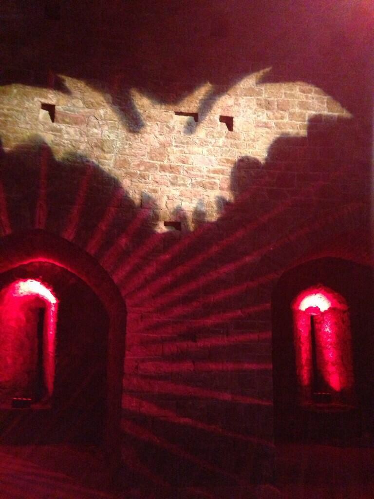 Congratulations and thanks to Chapter, Darkened Rooms and CADW for making this happen. And to students from the University of South Wales for some highly suitable visual and sound effects, including the bat projection, above, photographed by Helen Byrne.