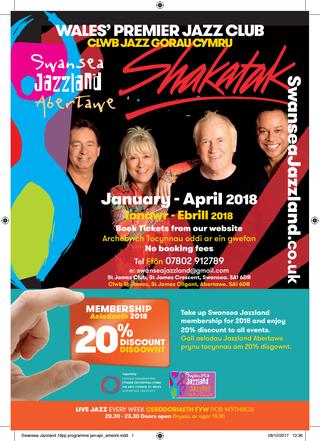 Friday night performances from Shakatak and the Hamish Stuart Band are among the highlights of the new year [2018] calendar announced by Swansea Jazzland.