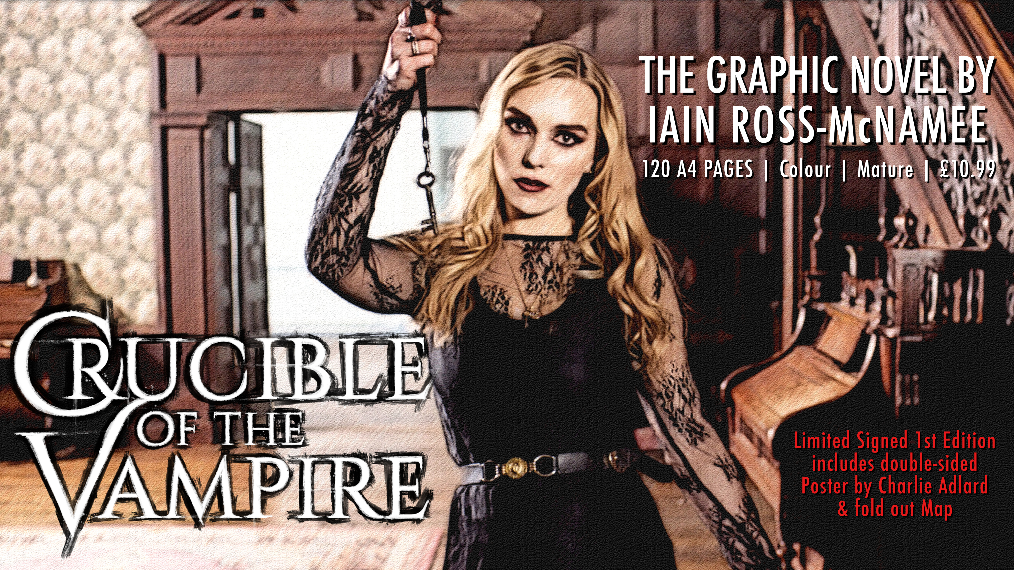 This is Crucible of the Vampire – a graphic novel (or perhaps more accurately photo-novel) by Iain Ross-McNamee, who co-wrote and directed the 2017 film, starring Neil Morrissey, Katie Goldfinch, and Piece of Pink Pie interviewee Florence Cady.